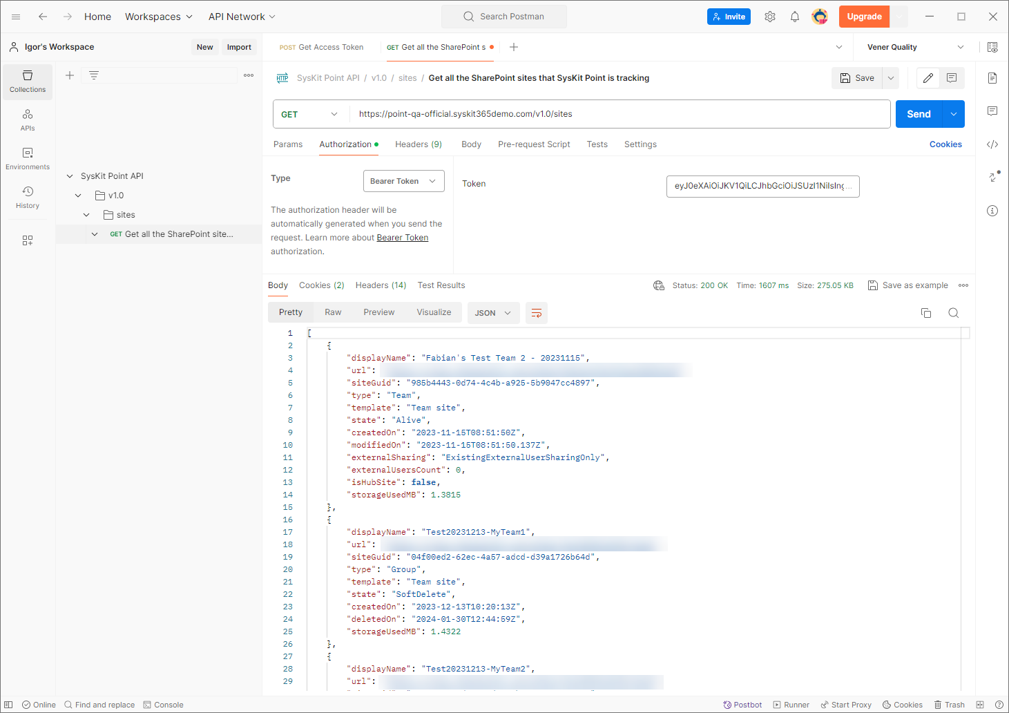 Under Authorization > Type, select Bearer Token and paste the access_token retrieved in the previous step.